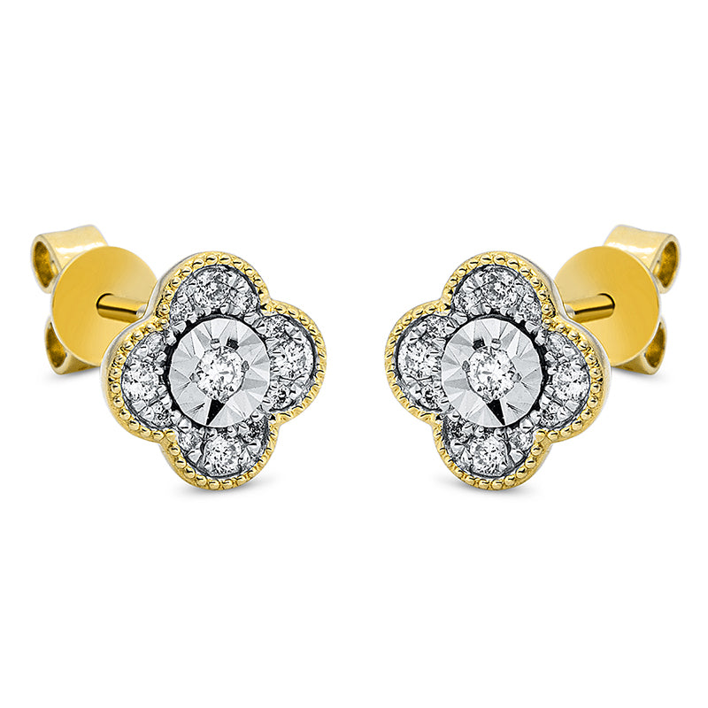 Ohrstecker 18 kt GG+WG. 10 Brillanten 0.12 ct. TW-si. 16 Brillanten 0.04 ct. TW-si. H:7.8 mm. B:7.8 mm