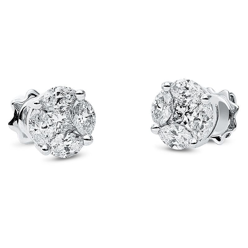 Ohrstecker 18 kt WG, 2 Princ. 0,37 ct, TW-si, 8 Nav. 1,12 ct, TW-si