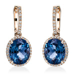 Ohrschmuck 18 kt RG, 78 Brill. 0,28 ct, TW-si, 2 Topase 8,80 ct Lond. blue