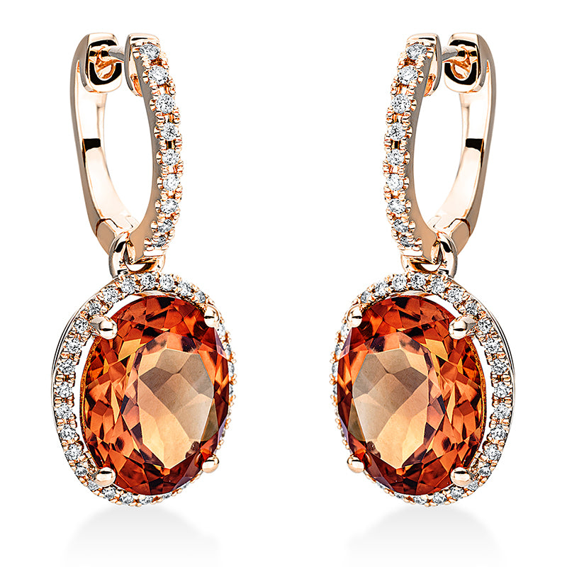 Ohrschmuck 18 kt GG, 78 Brill. 0,28 ct, TW-si, 2 Citrin 6,50 ct mandarin