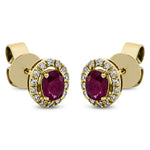 Ohrstecker 18 kt GG, 28 Brill. 0,08 ct, TW-pi, 2 Rubine 0,42 ct rot