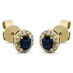 Ohrstecker 18 kt GG, 28 Brill. 0,08 ct, TW-pi, 2 Saphire 0,46 ct blau