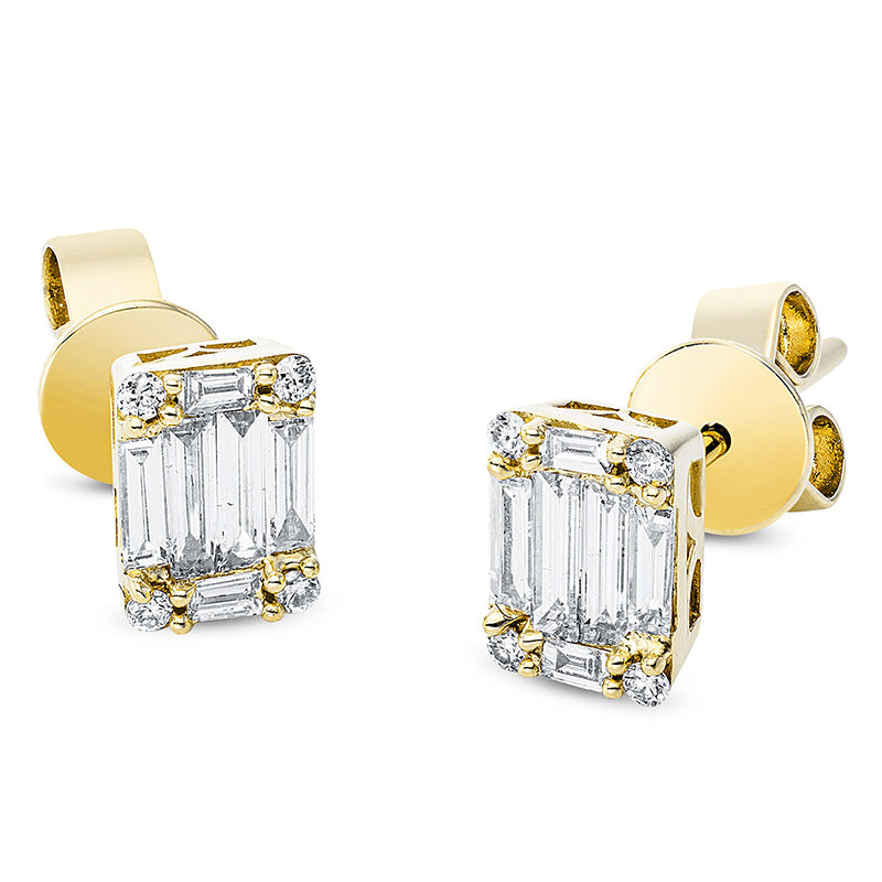Ohrstecker 18 kt GG. 12 Baguette 0.34 ct. TW-vsi/si. 8 Brillanten 0.06 ct. TW-si. H:6.7 mm. B:4.9 mm. S:3.5 mm