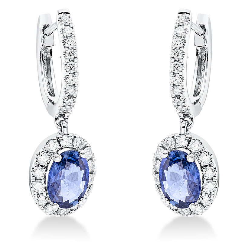 Ohrschmuck 18 kt WG, 46 Brill. 0,49 ct, TW-si, 2 Saphire 1,65 ct blau
