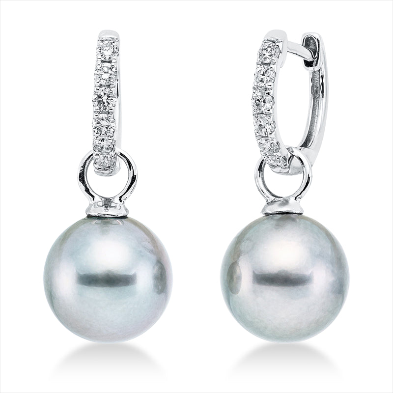 Ohrschmuck 18 kt WG, 12 Brill. 0,23 ct, TW-si, 2 TA silbergrau 9 mm