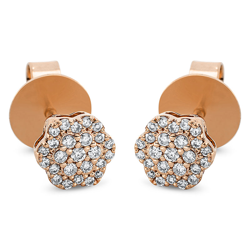 Ohrstecker 18 kt RG. 50 Brillanten 0.20 ct. TW-si. H:5.9 mm. B:6.4 mm. S:2.6 mm
