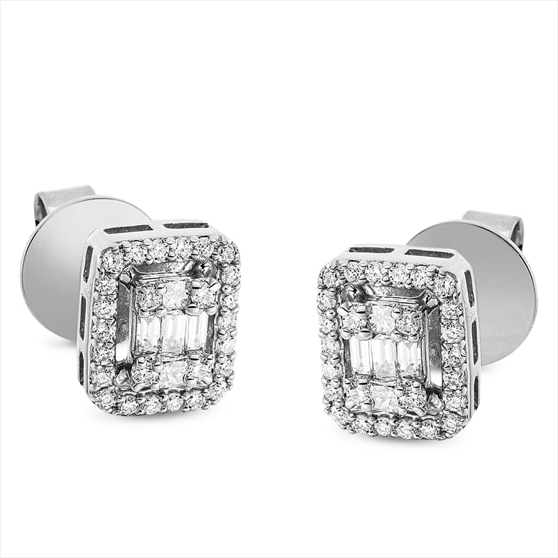 Ohrstecker 18 kt WG, 12 Bag. 0,22 ct, TW-si, 8 Princ. 0,12 ct, TW-si, 104 Brill. 0,46 ct, TW-si