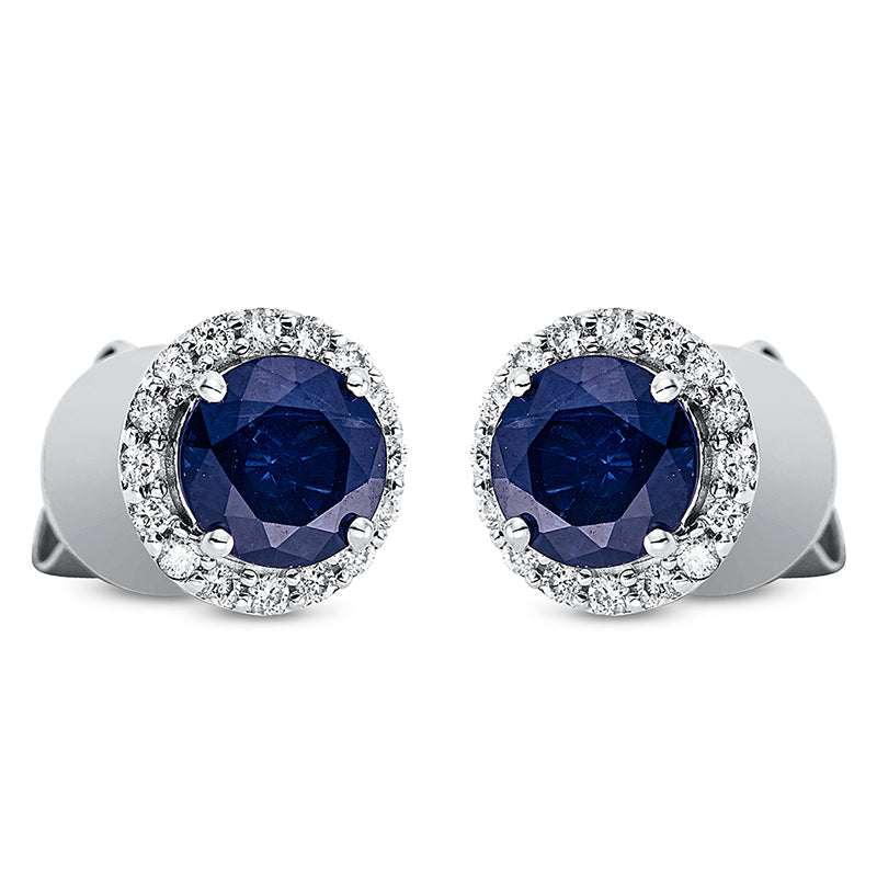 Ohrstecker 18 kt WG, 32 Brill. 0,16 ct, TW-si, 2 Saphire 1,34 ct blau