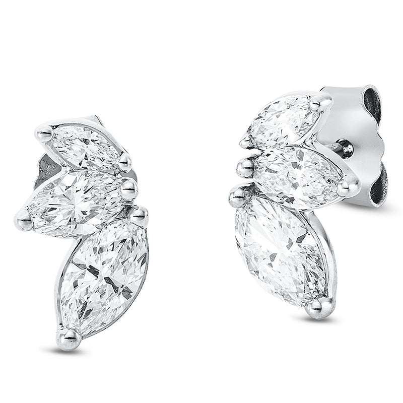 Ohrstecker 18 kt WG. 6 Navette 0.70 ct. TW-si. H:9.0 mm. B:5.3 mm. S:1.8 mm
