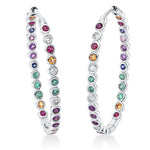 Creolen 18 kt WG. 8 Brillanten 0.11 ct. TW-si. 44 Farbsteine 0.67 ct fancy. H:30.0 mm. B:22.6 mm. S:2.4 mm