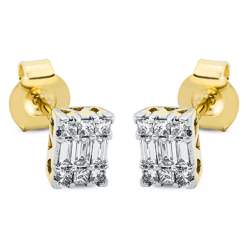 Ohrstecker 18 kt GG+WG. 12 Princ. 0.18 ct. TW-si. 6 Baguette 0.13 ct. TW-si