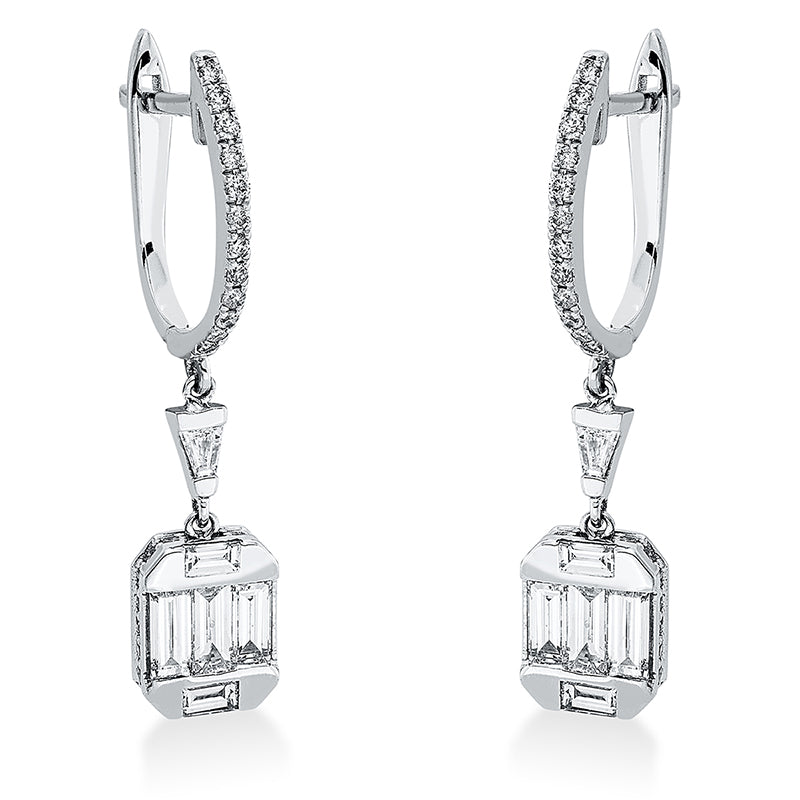 Ohrschmuck 14 kt WG. 6 Baguette 0.31 ct. F-vsi. 6 Baguette 0.68 ct. F-vsi. 64 Brillanten 0.33 ct. TW-vsi