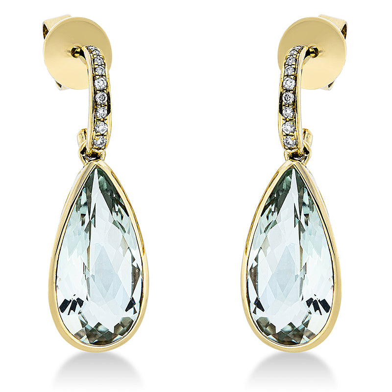 Ohrschmuck 18 kt GG, 18 Brill. 0,09 ct, TW-si, 2 Amethyste 7,90 ct grün