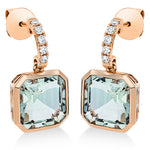 Ohrschmuck 18 kt RG. 10 Brillanten 0.23 ct. TW-si. 2 Amethyste 9.20 ct grün. H:21.7 mm. B:11.4 mm. S:6.4 mm
