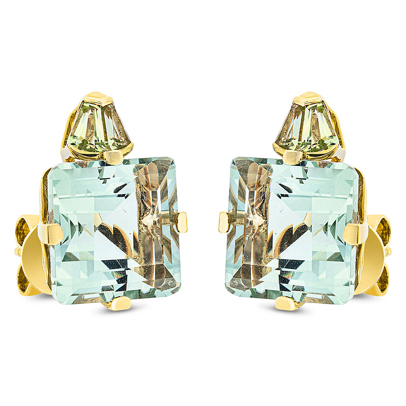 Ohrstecker 18 kt GG, 2 Amethyste 13,00 ct grün, 4 Peridot 0,70 ct grün