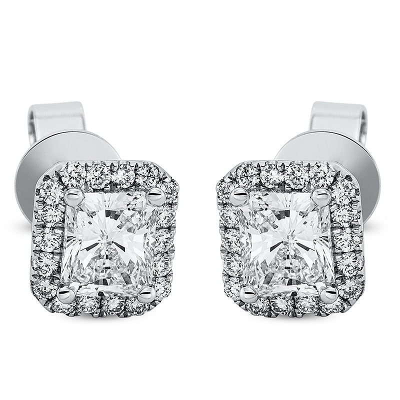 Ohrstecker 18 kt WG, 2 Radiant 1,42 ct, TW-vsi, 36 Brill. 0,32 ct, TW-vsi