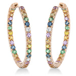 Creolen 18 kt RG. 4 Brillanten 0.15 ct. TW-vsi/si. 58 Saphire 3.07 ct multicolor. H:28.9 mm. B:29.5 mm. S:2.2 mm