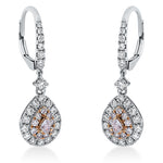 Ohrschmuck 18 kt WG+RG, 42 Brill. 0,67 ct, TW-si, 2 Tropfen 0,15 ct, pink, 18 Brill. 0,30 ct, pink
