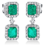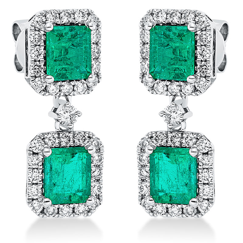 Ohrschmuck 900 Pt Platin. 66 Brillanten 0.82 ct. TW-si. 4 Smaragde 2.58 ct grün. H:21.3 mm. B:7.9 mm. S:3.9 mm