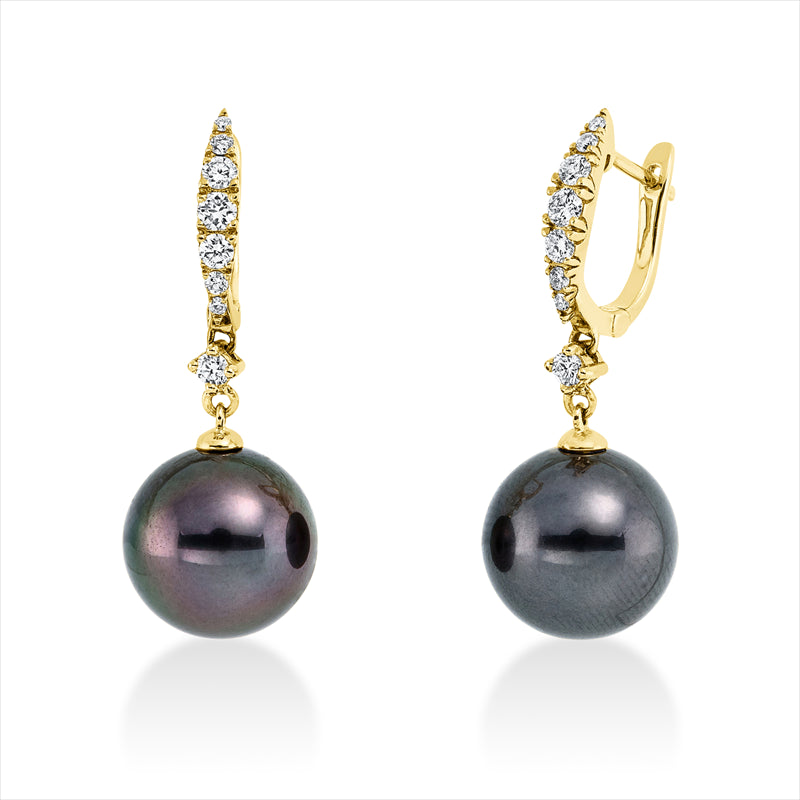 Ohrschmuck 18 kt GG, 16 Brill. 0,38 ct, TW-vsi/si, 2 TA grün 12 mm