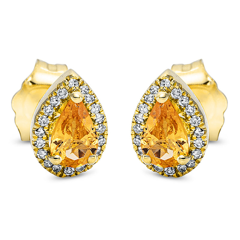 Ohrstecker 18 kt GG. 40 Diamanten 0.07 ct. TW-si. 2 Citrin 0.48 ct gelb