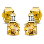Ohrstecker 18 kt GG, 4 Bag. 0,03 ct, TW-si, 2 Citrin 0,46 ct gelb