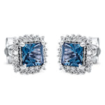 Ohrstecker 4er-Krappe 18 kt WG. 40 Brillanten 0.23 ct. TW-si. 2 Topase 1.70 ct Lond. blue. H:8.2 mm. B:8.2 mm. S:4.6 mm