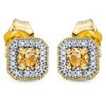 Ohrstecker 18 kt GG. 40 Diamanten 0.05 ct. TW-si. 2 Citrin 0.20 ct gelb. H:6.0 mm. B:6.0 mm. S:2.2 mm