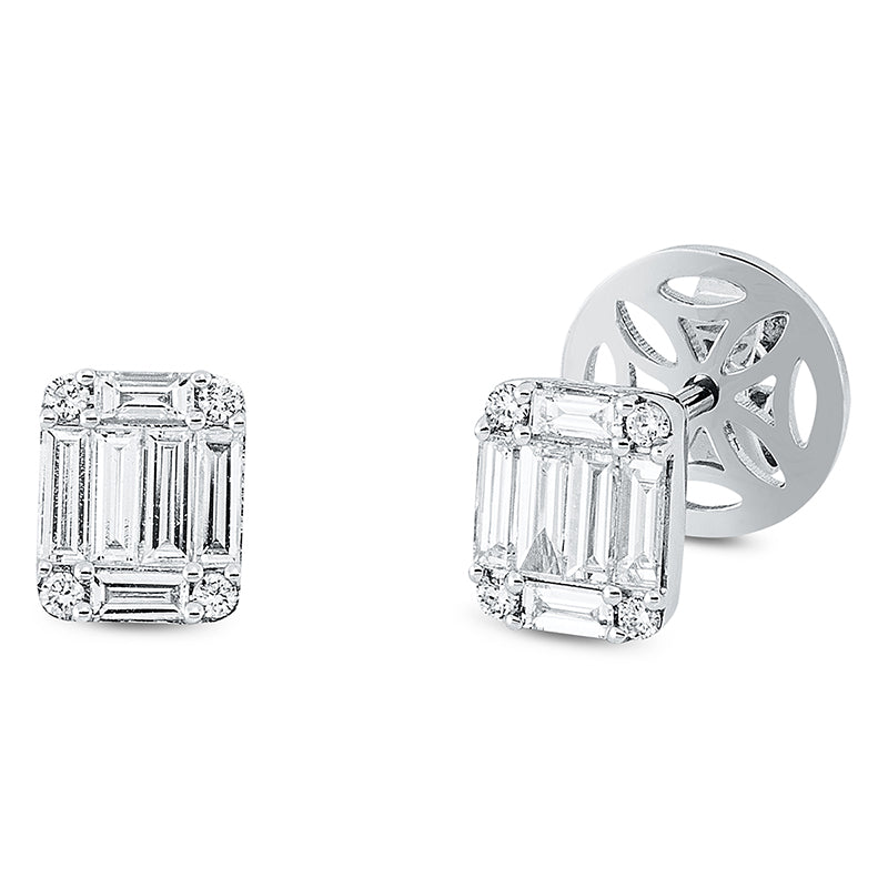 Ohrstecker 18 kt WG. 12 Baguette 0.48 ct. TW-si. 8 Brillanten 0.06 ct. TW-si