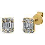 Ohrstecker 18 kt GG. Fassung rhodiniert. 10 Baguette 0.24 ct. TW-si. 8 Brillanten 0.06 ct. TW-si. H:5.4 mm. B:4.4 mm