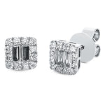Ohrstecker 18 kt WG. 4 Baguette 0.28 ct. TW-si. 24 Brillanten 0.26 ct. TW-si. H:6.3 mm. B:6.3 mm. S:2.9 mm