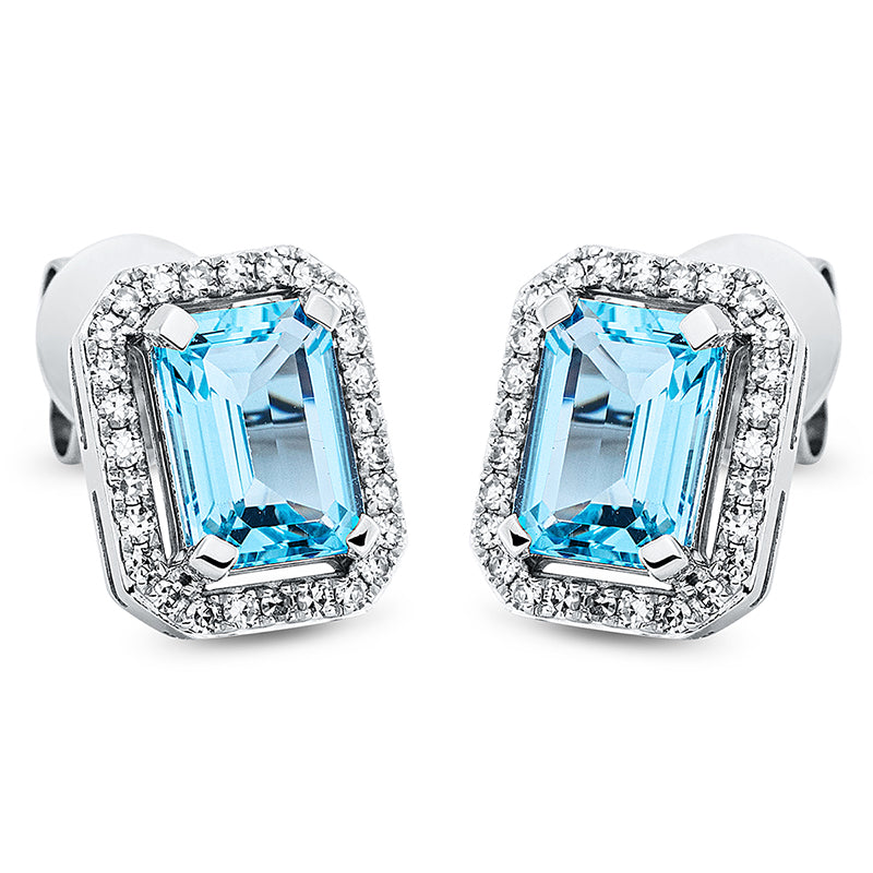 Ohrstecker 18 kt WG, 54 Dia. 0,20 ct, TW-si, 2 Topase 2,29 ct blau