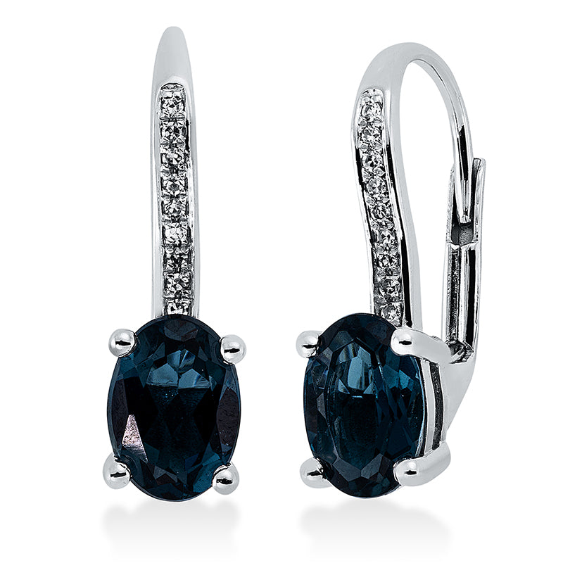 Ohrschmuck 18 kt WG, 18 Dia. 0,05 ct, TW-si, 2 Topase 1,68 ct Lond. blue