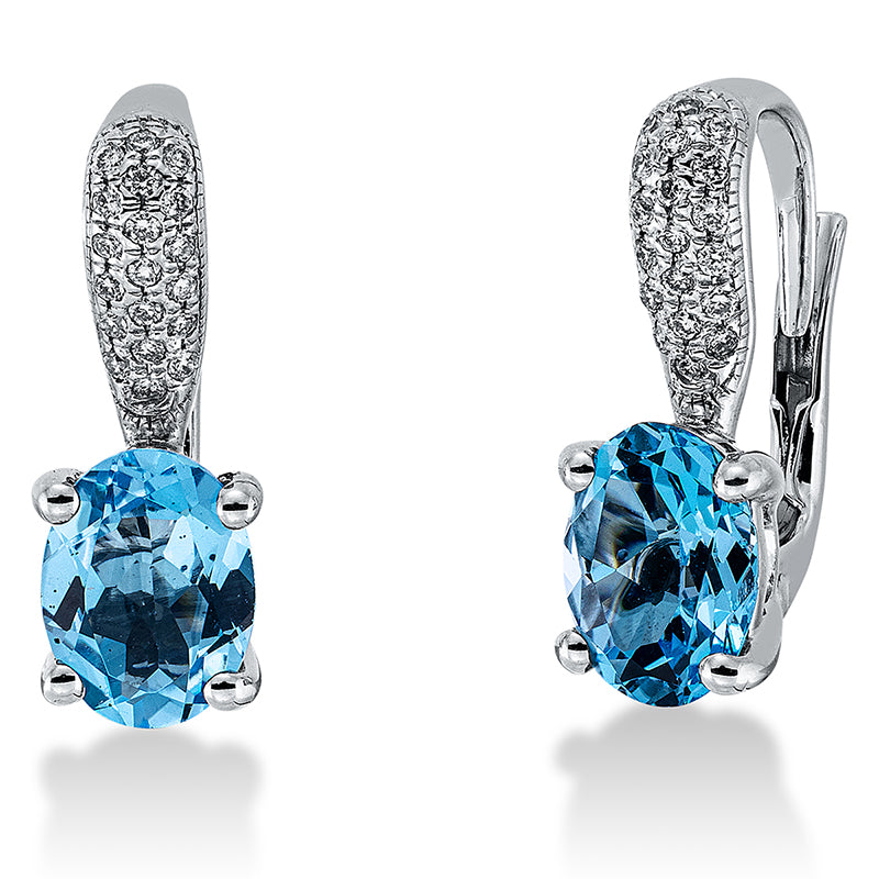 Ohrschmuck 18 kt WG, 40 Brill. 0,15 ct, TW-si, 2 Topase 3,20 ct blau