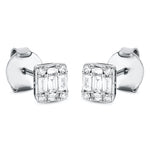 Ohrstecker 18 kt WG. mit ZÖ 40 cm. 4 Baguette 0.03 ct. TW-si. 6 Baguette 0.10 ct. TW-si. 8 Brillanten 0.03 ct. TW-si