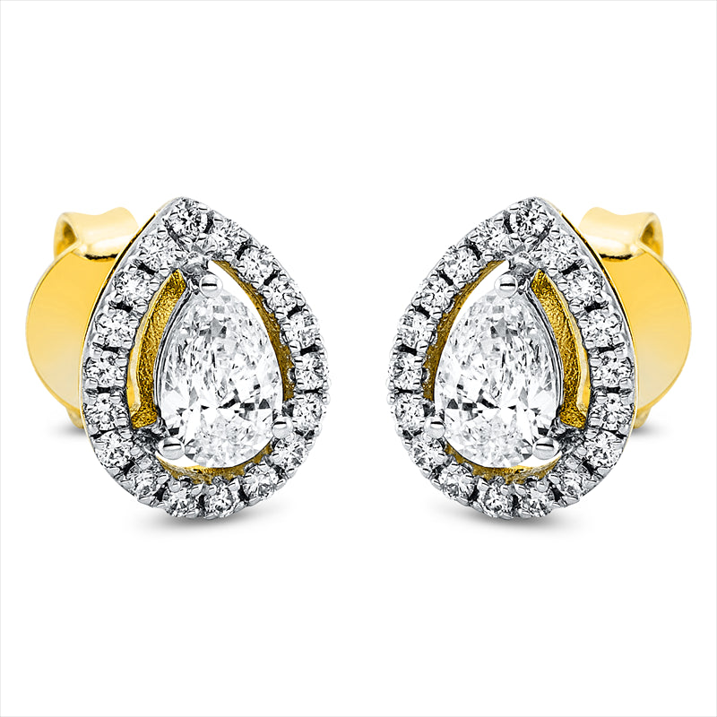 Ohrstecker 18 kt GG, Fassung rhodiniert, 2 Tropfen 0,62 ct, TW-si, 36 Brill. 0,23 ct, TW-si