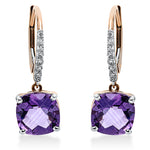Ohrschmuck 18 kt RG, Fassung rhodiniert, 14 Brill. 0,14 ct, TW-si, 2 Amethyste 4,07 ct lila