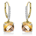 Ohrschmuck 18 kt GG, Fassung rhodiniert, 14 Brill. 0,13 ct, TW-si, 2 Citrin 4,22 ct gelb
