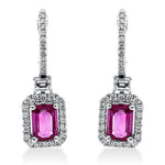 Ohrschmuck 18 kt WG, 2 Bag. 0,23 ct, TW-vsi, 62 Brill. 0,47 ct, TW-si, 2 Rubine 2,00 ct rot