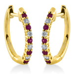 Creolen 18 kt GG. 8 Brillanten 0.10 ct. TW-pi. 10 Rubine 0.15 ct rot. H:14.3 mm. B:14.5 mm. S:1.4 mm
