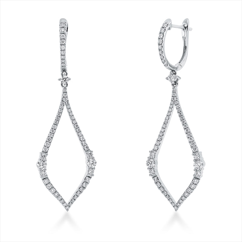 Ohrschmuck 18 kt WG. 110 Brillanten 1.00 ct. TW-si. 2 Brillanten 0.10 ct. TW-si. 4 Brillanten 0.35 ct. TW-si. H:53.5 mm. B:16.4 mm. S:2.8 mm