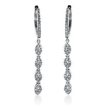 Ohrschmuck 18 kt WG. 16 Brillanten 0.20 ct. TW-si. 8 Navette 0.36 ct. E-vsi. 28 Brillanten 0.17 ct. TW-si. H:38.7 mm. B:3.1 mm. S:2.5 mm