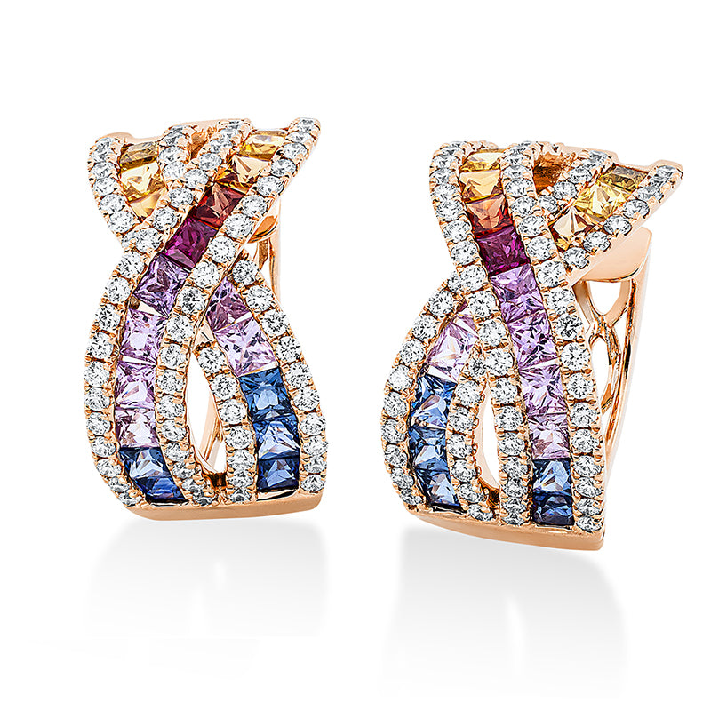 Creolen 18 kt RG. 138 Brillanten 0.94 ct. TW-si. 40 Saphire 3.21 ct fancy