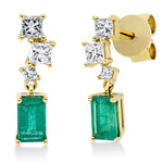 Ohrschmuck 18 kt GG. 6 Princ. 0.32 ct. TW-si. 2 Smaragde 0.70 ct grün. H:13.2 mm. B:3.0 mm. S:3.4 mm