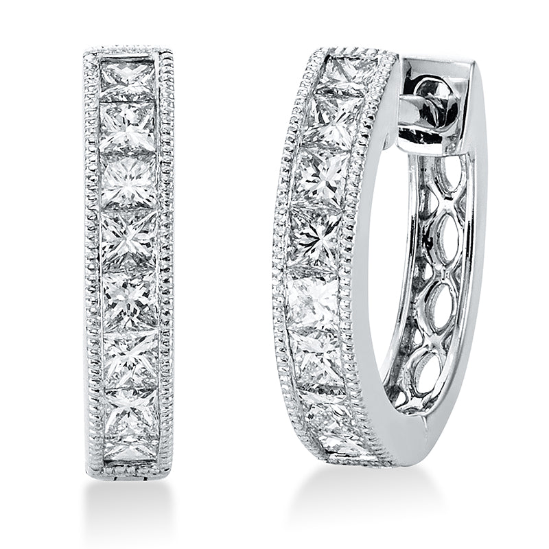 Creolen 18 kt WG. 16 Princ. 0.51 ct. E-vsi. H:11.7 mm. B:11.3 mm. S:2.5 mm
