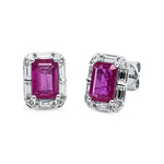 Ohrstecker 18 kt WG, 12 Bag. 0,31 ct, TW-si, 8 Brill. 0,08 ct, TW-si, 2 Rubine 1,42 ct rot