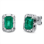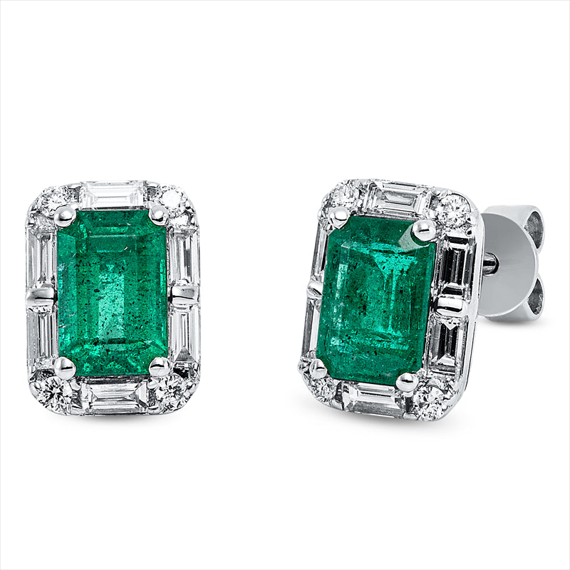 Ohrstecker 18 kt WG, 12 Bag. 0,30 ct, TW-si, 8 Brill. 0,08 ct, TW-si, 2 Smaragde 1,16 ct grün