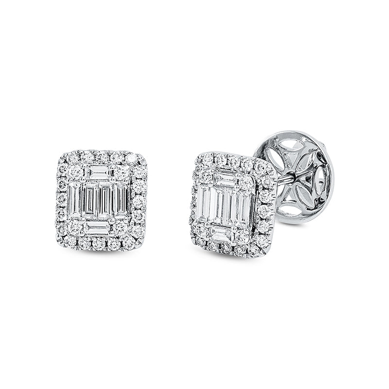 Ohrstecker 18 kt WG. 12 Baguette 0.34 ct. TW-si. 48 Brillanten 0.29 ct. TW-si. H:8.4 mm. B:7.6 mm