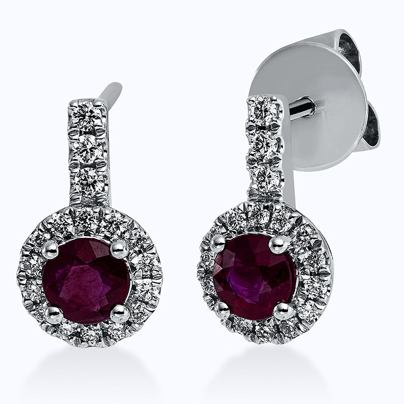 Ohrstecker 18 kt WG, 34 Brill. 0,19 ct, TW-si, 2 Rubine 0,53 ct rot