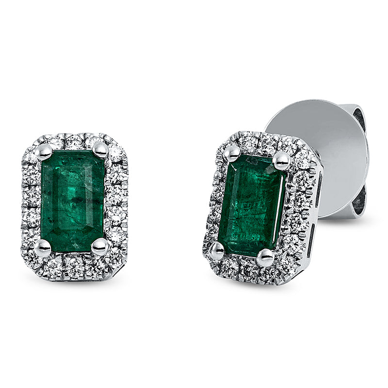 Ohrstecker 18 kt WG, 36 Brill. 0,13 ct, TW-si, 2 Smaragde 0,49 ct grün